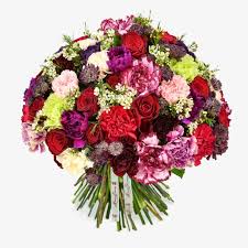 Medium – 20 mixed carnations, 10 red roses, 5 purple astrantia, 5 white wax flowers, 0.5 bunch of salal