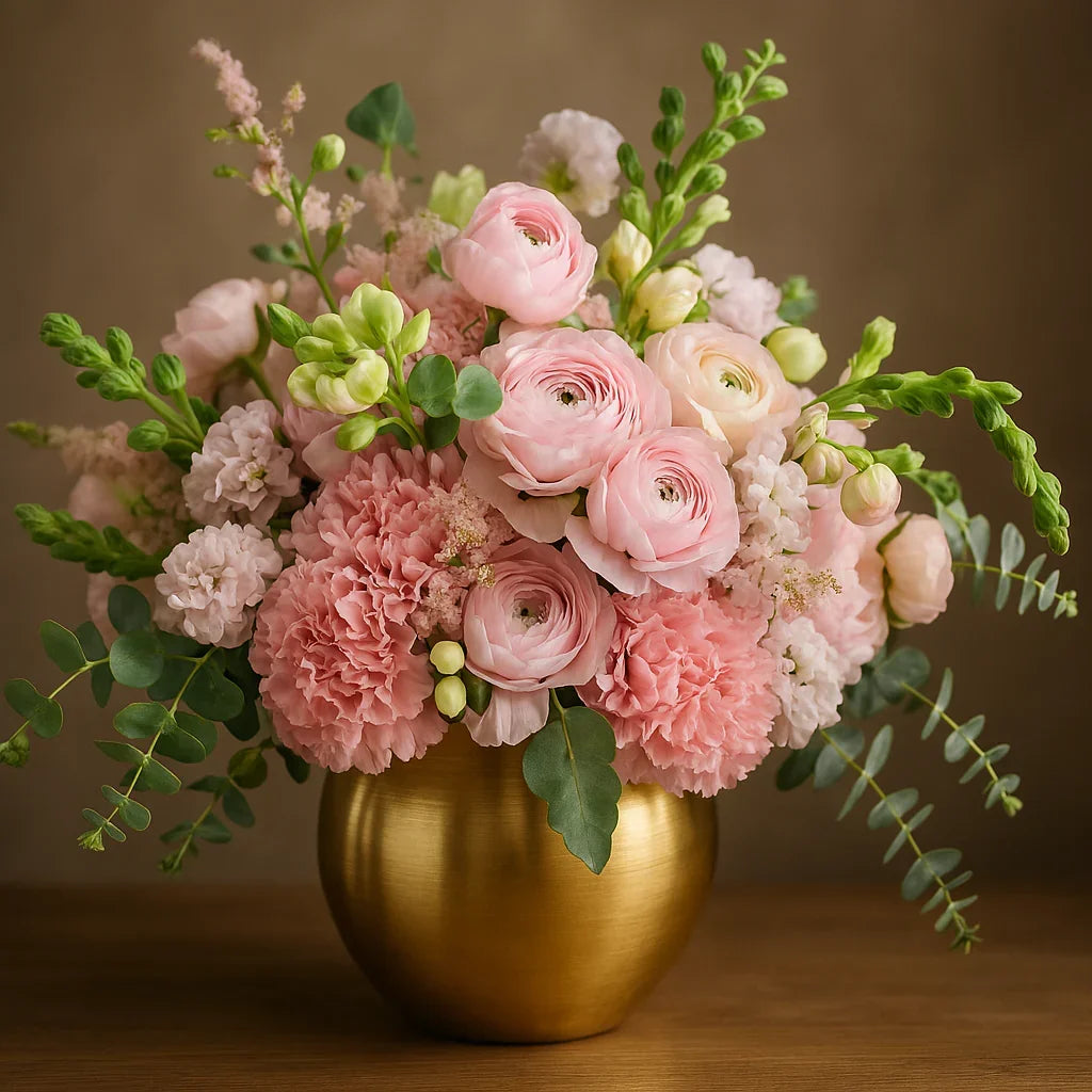 The Blush of Spring bouquet captures the soft beauty of the season. Delicate pastel blooms in a harmonious arrangement that radiates elegance, perfect for any occasion.