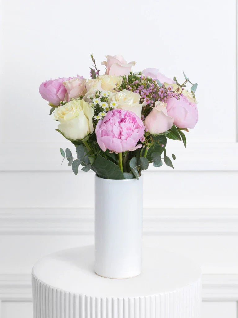 Emma is the perfect harmony of grace and modern style. This luxury bouquet combines soft blush and ivory blooms with lush greenery, creating an arrangement that feels both fresh and timeless.
