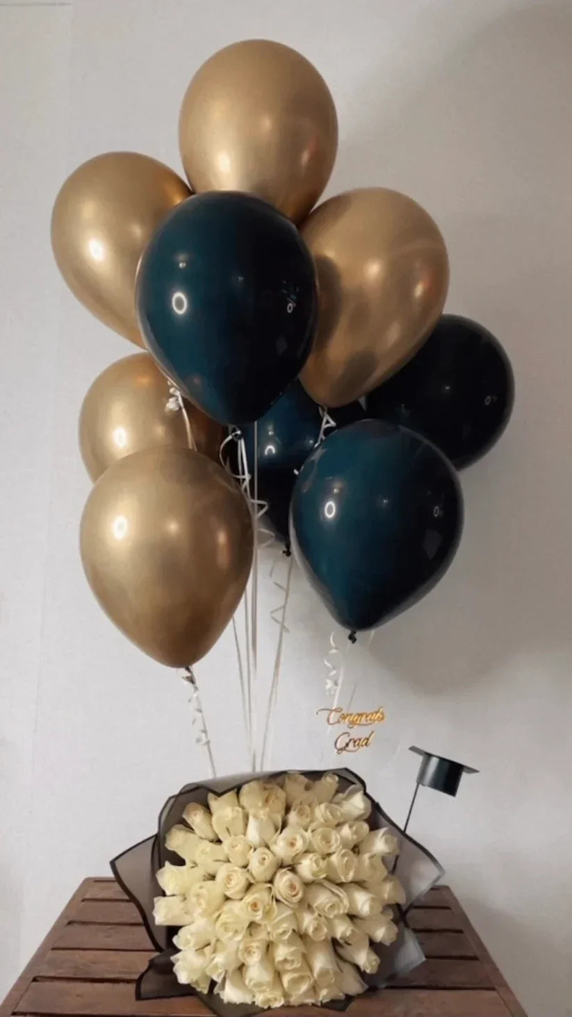Graduation Bouquet and Balloons is the full celebration package. Fresh flowers and festive balloons come together in one joyful gift. Great for surprise deliveries or decorating your party. Make them feel extra special—grab the full combo today!