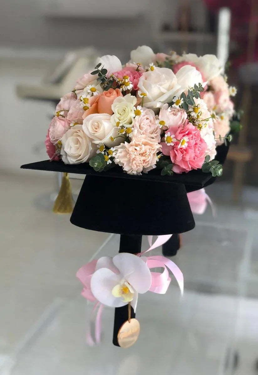 This floral Graduation Cap is full of meaning and love. Designed to match the look of a real cap, it’s great for gifting and decor. Make the moment unforgettable with this creative flower idea.