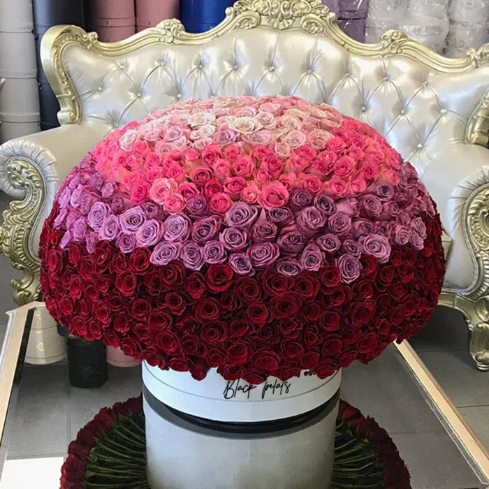 Introducing the Grandiose 500 Ombre, a masterpiece that defines luxury and elegance. This lavish arrangement features 500 premium roses expertly crafted in an ombre gradient, blending shades seamlessly for breathtaking visual impact.