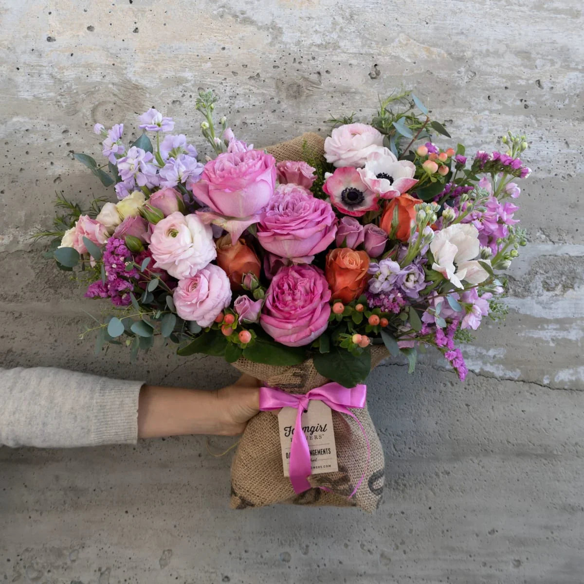 The Lindy Hop Bouquet by Elite Flowers is designed to capture the spirit of lively celebration and infectious joy. This vibrant arrangement features a cheerful mix of brightly colored roses, daisies, and seasonal blooms that dance with energy and charm. Artfully arranged in an elegant vase, it’s perfect for birthdays, congratulations, or simply to make someone smile. Bring fun, color, and movement into any space with this delightful floral design.