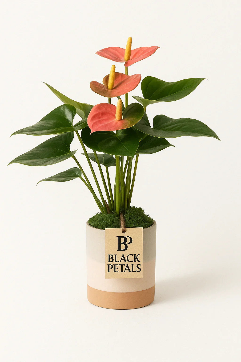 Embrace the season of fresh beginnings with a bold expression of love. This stunning pink anthurium, presented in a soft blush and white pot, makes a beautiful statement. Much like the first blooms of spring, it blends romance and elegance, symbolizing renewal and growth.