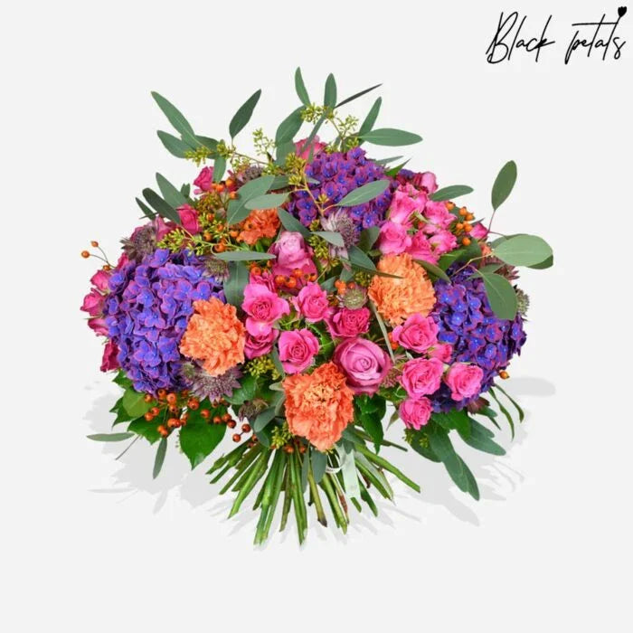 Purple Paradise is a vivid celebration of modern style and vibrant color. This luxury bouquet features rich purple blooms, layered textures, and fresh greenery that create an unforgettable display.