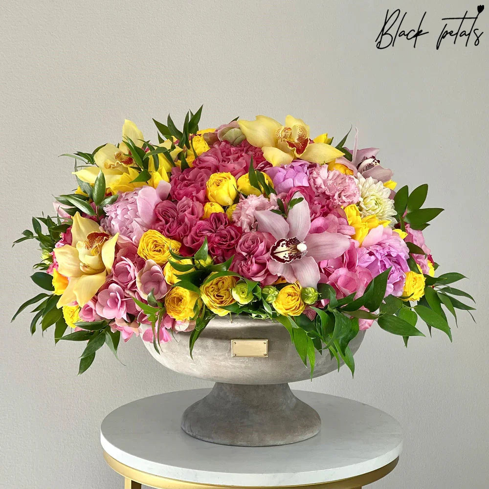 - Fresh Black Petal Signature garden roses, peonies, and other flowers
