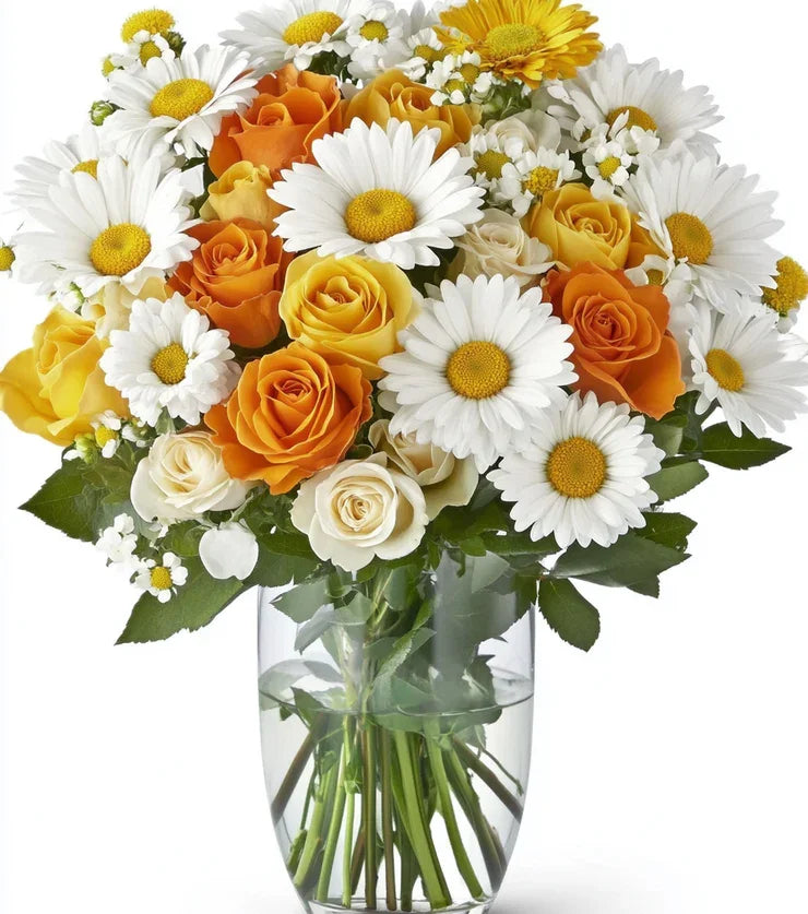 The Gift of Music is a symphony of color and emotion. This luxury bouquet pairs bright daisies and seasonal blooms in a composition that feels joyful and fresh.